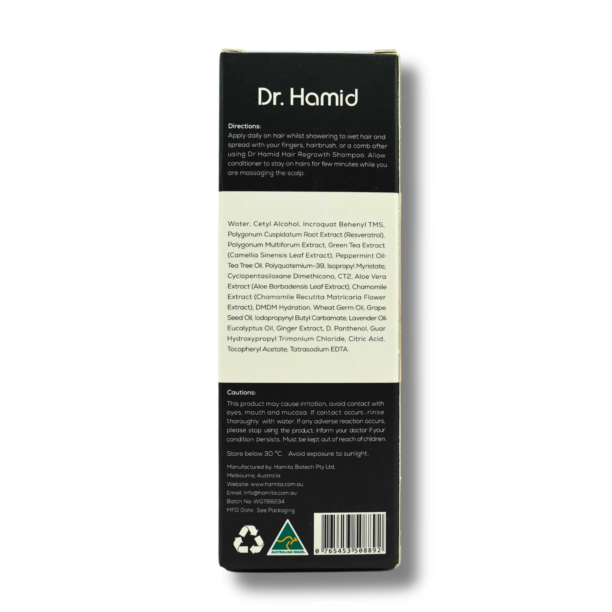 Dr Hamid Hair Care & Growth Conditioner is an Australian-made product developed with unique natural ingredients in microparticles to smooth the hair strands, make them less static, and keep the moisture in and pollutants out.