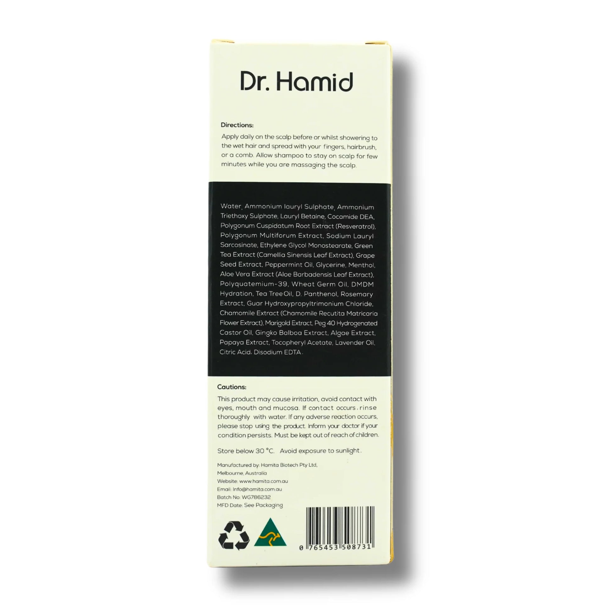 Dr Hamid Hair Care & Growth Shampoo is an Australian-made product with a unique formula of all necessary nutrients, vitamins, minerals and antioxidants extracted from natural ingredients for hair and scalp rejuvenation, stimulating hair growth, maintaining healthy hair and restoring hair loss and baldness.