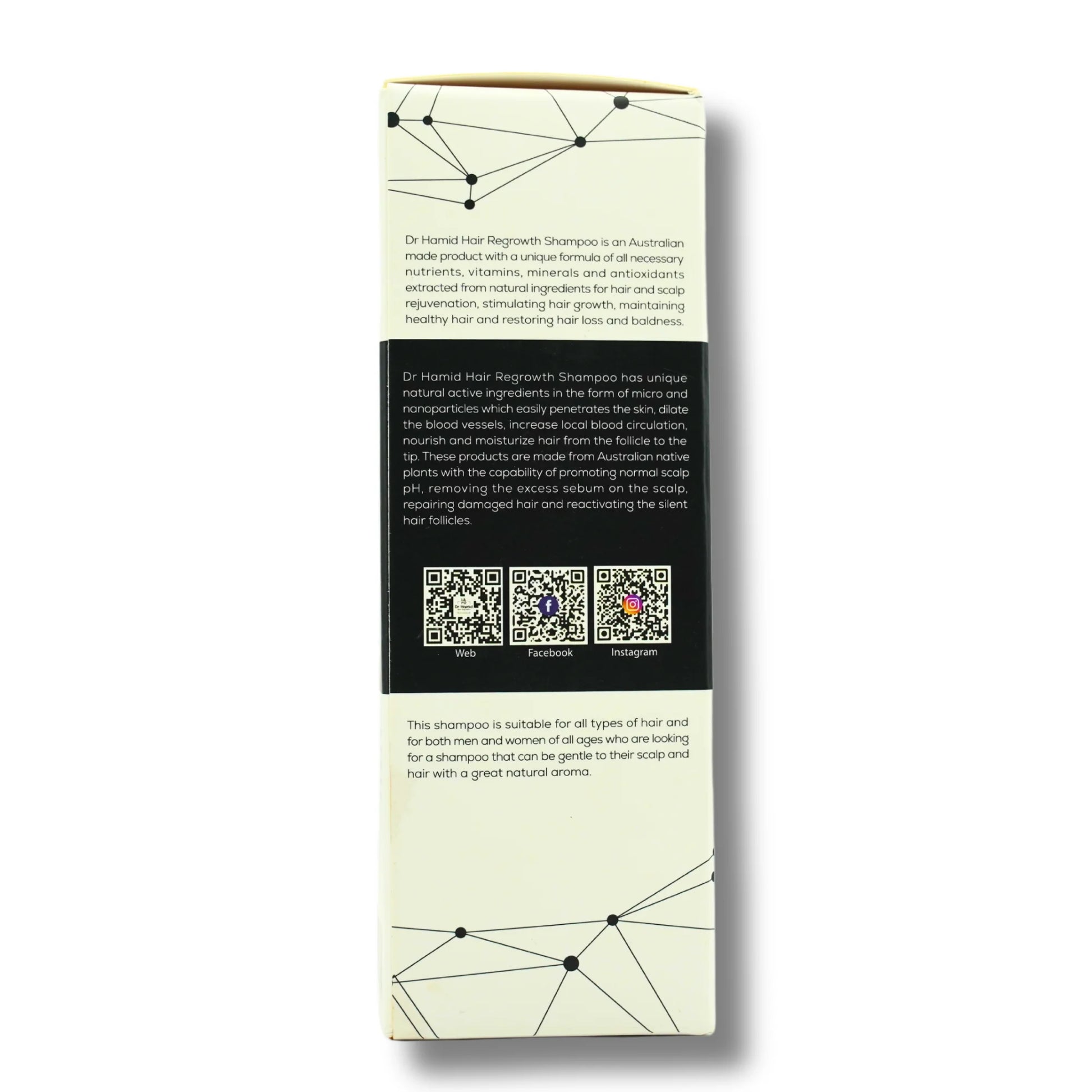 Dr Hamid Hair Care & Growth Shampoo is an Australian-made product with a unique formula of all necessary nutrients, vitamins, minerals and antioxidants extracted from natural ingredients for hair and scalp rejuvenation, stimulating hair growth, maintaining healthy hair and restoring hair loss and baldness.